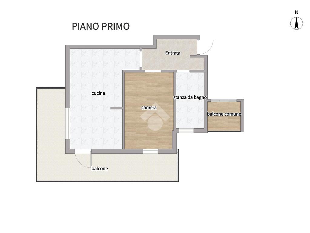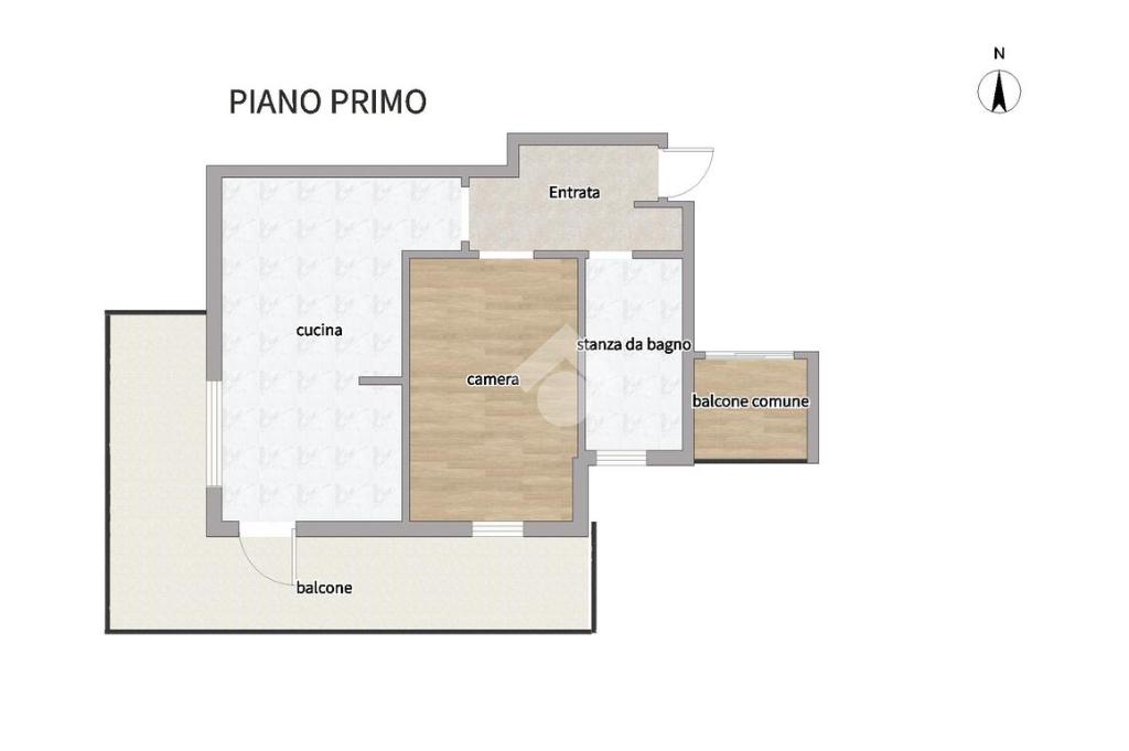 L’abitazione principale internamente fa fede allo stato originario della costruzione, pur mantenendo un buono stato di conservazione, con camera da letto ampia, bagno con finestra e vasca, soggiorno con cucinino, luminoso grazie alla presenza di una portafinestra che dà accesso diretto al balcone angolare di circa 18 m².