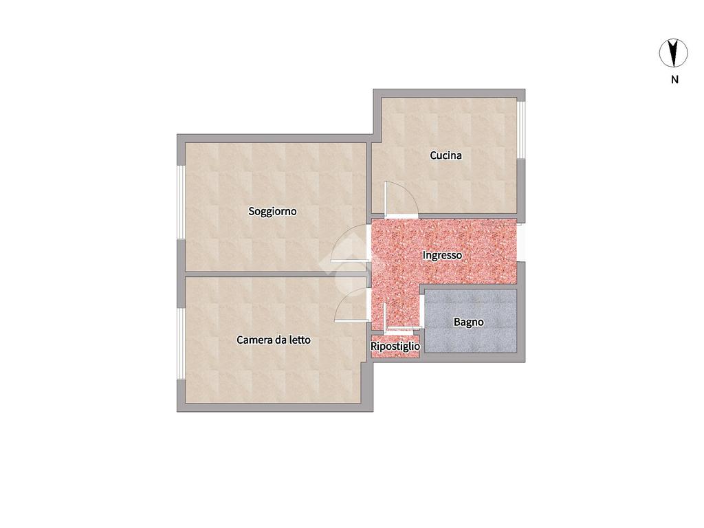 L’immobile presenta una disposizione funzionale e ben organizzata degli spazi. Internamente si compone di tre locali, rappresentati da una camera da letto accogliente e luminosa, un bagno finestrato dotato di vasca e attacchi per la lavatrice, una cucina, un piccolo ripostiglio ed un’ulteriore stanza attualmente adibita a soggiorno, anch’essa luminosa.