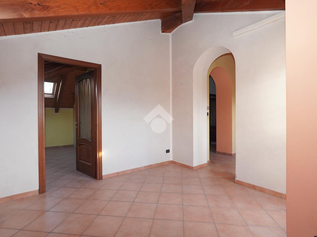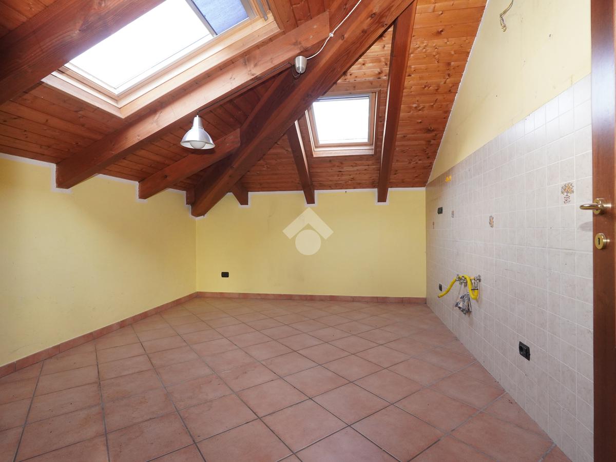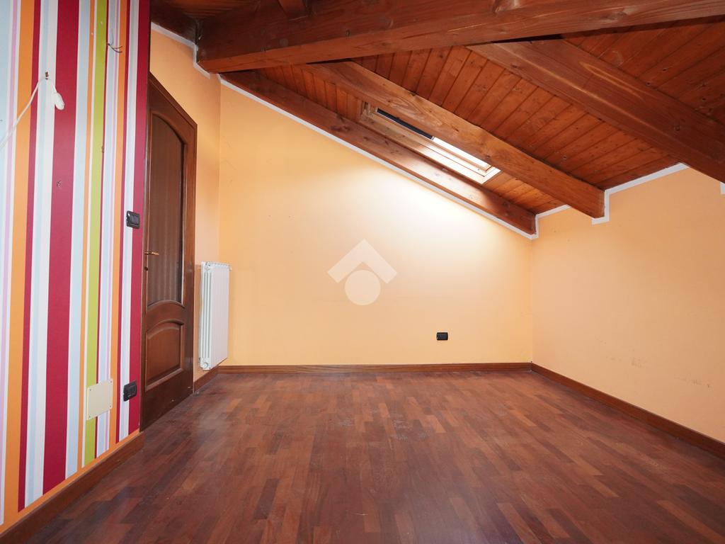 La distribuzione interna comprende tre camere di dimensioni contenute e due bagni, organizzati sotto le falde del tetto. Le camere, per caratteristiche e proporzioni, si prestano anche a utilizzi differenti rispetto alla classica camera da letto, come studi, locali di servizio o cabine armadio. L’intera abitazione è illuminata esclusivamente da finestre a tetto; i velux assicurano un apporto di luce naturale costante durante l’arco della giornata e contribuiscono a creare un ambiente riservato, privo di affacci diretti, con una relazione visiva rivolta verso l’alto. In tutti gli ambienti è presente una pavimentazione continua in grès porcellanato, mentre nelle tre camere è stato posato il parquet.