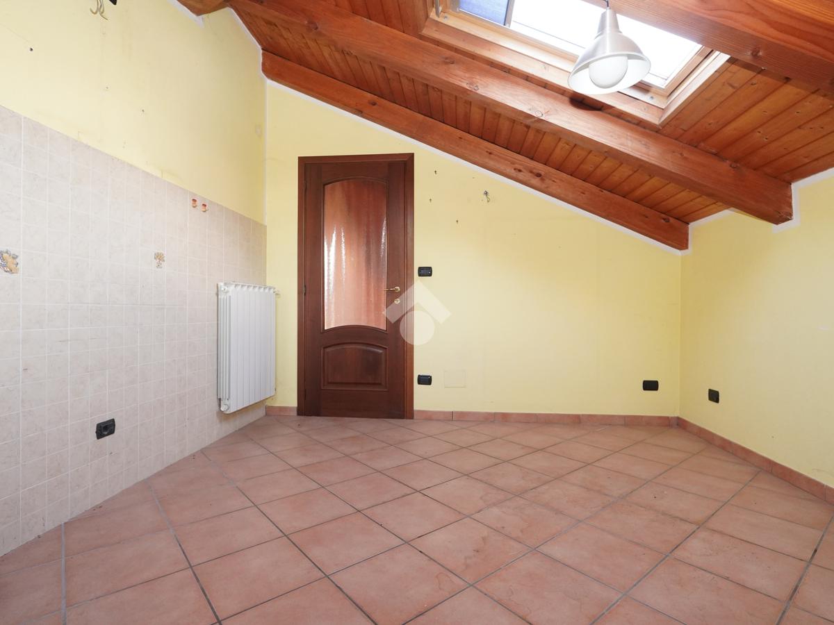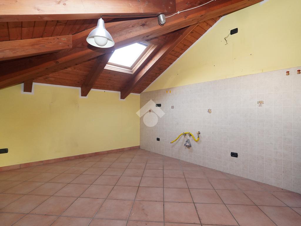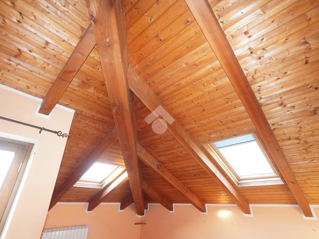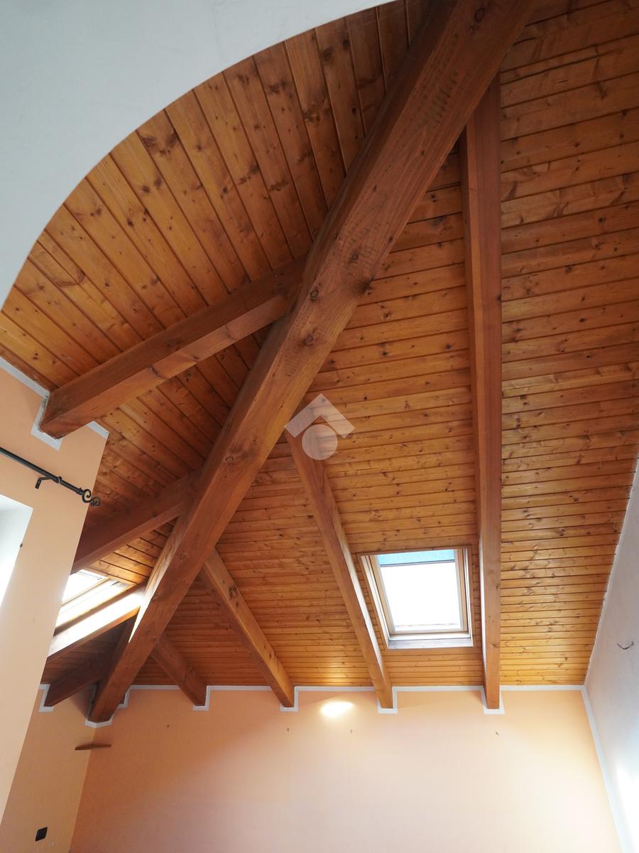 Alloggio interamente mansardato, dove il tetto in legno a vista diventa l’elemento architettonico dominante e accompagna tutti gli ambienti, disegnando volumi irregolari e profondità diverse. Le altezze interne variano dai 3,70 metri del colmo ai 1,40 metri delle parti più raccolte, dando forma a uno spazio che cambia continuamente e che si distingue nettamente dalle abitazioni tradizionali.